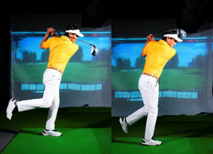 片足で立ってフルスイングしてボールを打つ。できるかな?