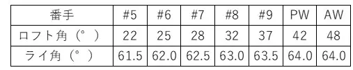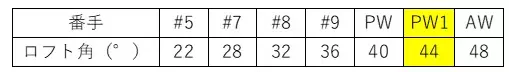 一般的なアイアンのロフトセッティング。