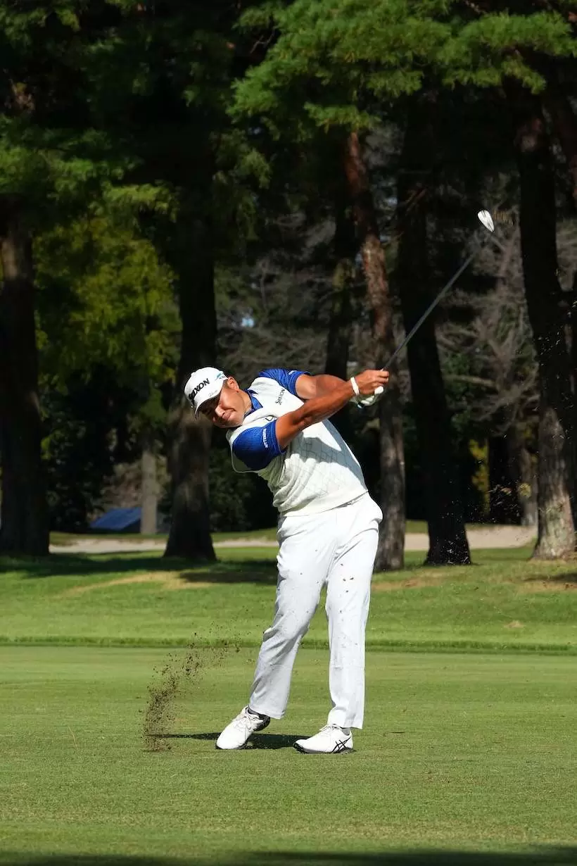 アイアンショットでもしっかりとカラダを捻転させていることが見て取れる。