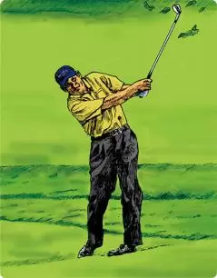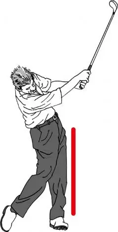 右ヒザは前方に出し、左ヒジは後方に引くことでボディターンを抑えつつ、右手とクラブを十分に振り抜くプライス。余計な動きがない。