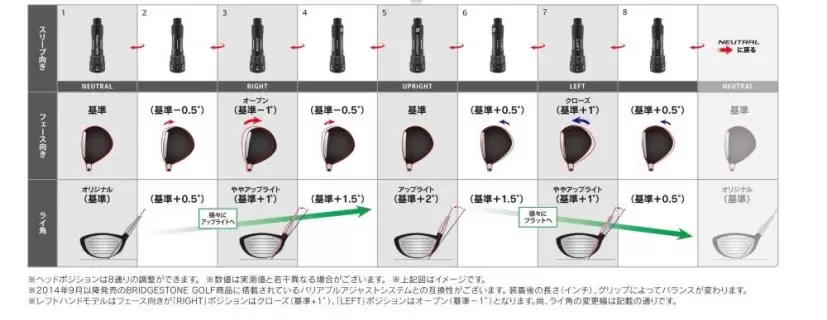 ロフト角を変えると釣られてライ角もフェースアングルも変わる。