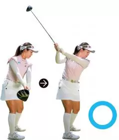 放り投げる感覚でテークバックできれば、ハーフウェイバックでは腕の力が抜ける。トップではスピードがゼロになってから押し返すことで振り子軌道が加速する。