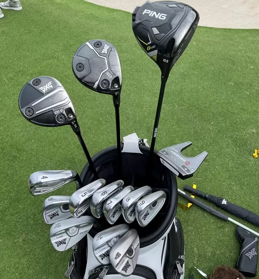 ほとんどがPXGだが、4社7モデルのクラブが混在する。(撮影/森伊知郎)
