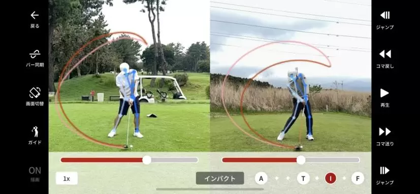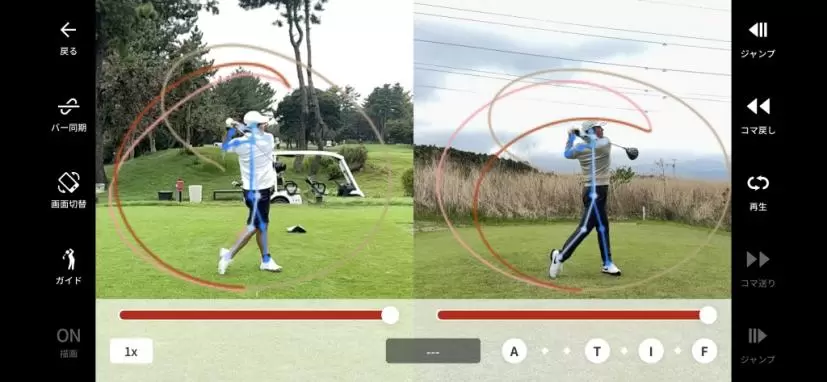 清水プロは滑らかで大きな「楕円」を描く(右)に対して、真円に近くカクカクしたスイング軌道(泣)