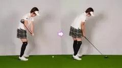 Wさんのスイングイメージ。腰が先行して右肩が下がり、ヘッドがボールの手前で最下点を迎えるワンタッチになっていた。