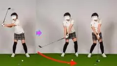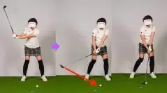 アウトサイド・インのカット軌道だとボールを上から押さえ込むインパクトになりがち。ハンドファーストのインパクトになってロフトが立つため球が上がらない。
