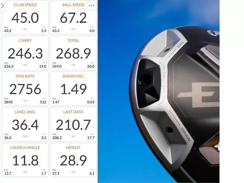 HS43m/sのゴルファーを想定した測定データの一例。