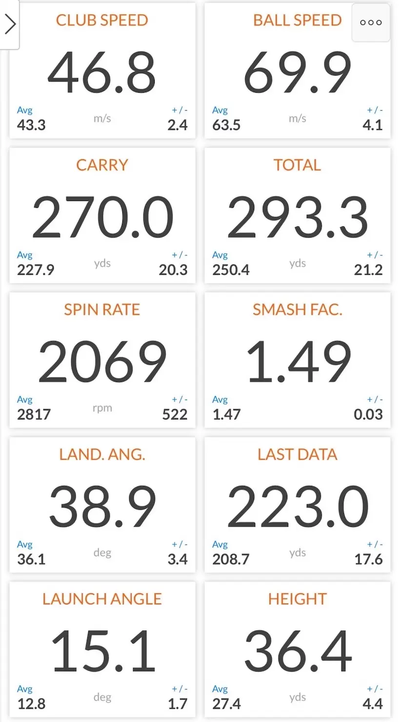HS47m/s前後のゴルファーを想定した測定データの一例。