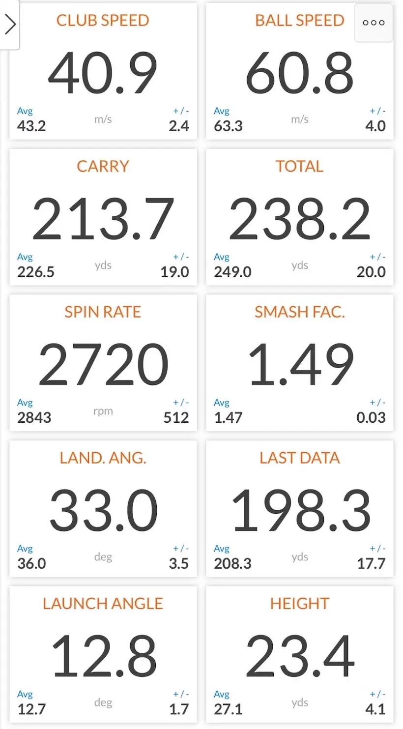 HS40m/s前後のゴルファーを想定した測定データの一例。