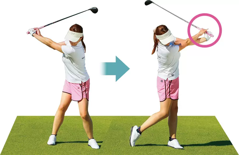 目標に対して少し右向きの軌道をイメージしてスイング。