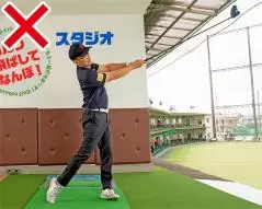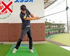 • 左腰の高さを通過した後は、カラダの回転と連動して目標の左へと振り抜こう。