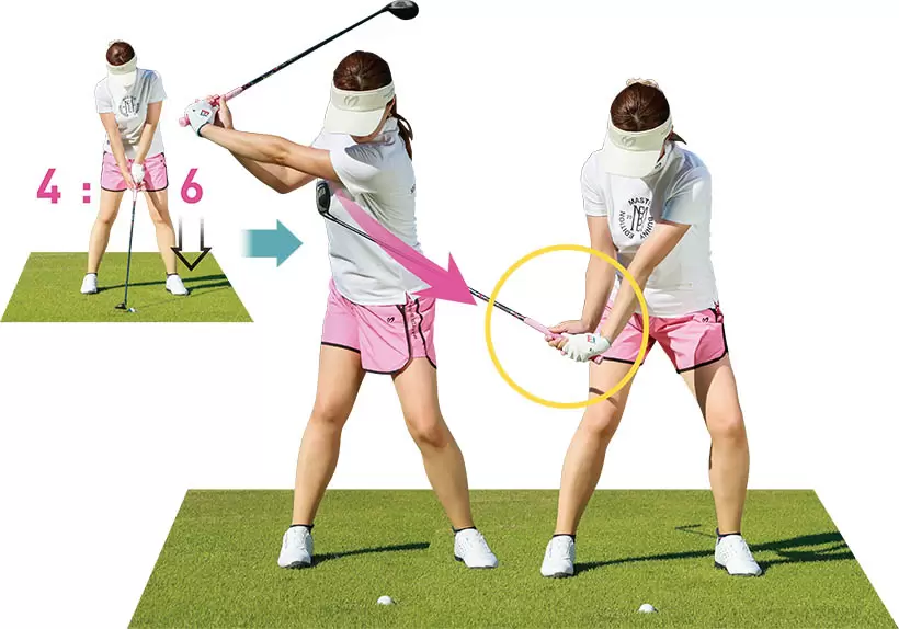 上げようとすると右足体重になり、大ダフリの結果に。