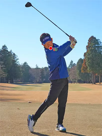 飛距離アップ、カラダが硬いからと諦めてはダメ! トップで左肩がアゴにつくまで捻転しましょう!!