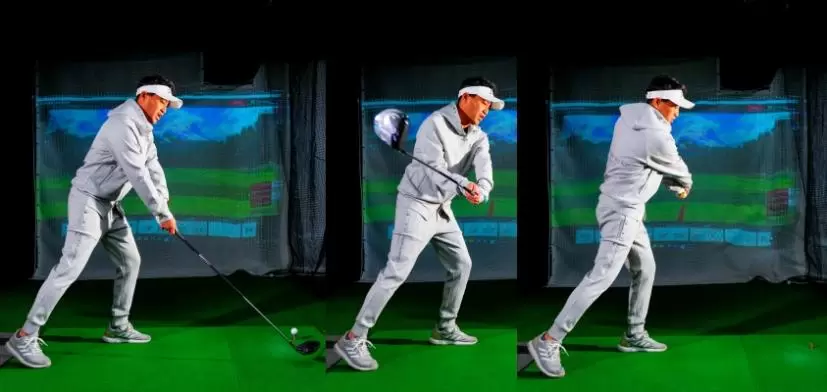 思い切りクローズに構えて左足を軸にしてクラブを振るとヘッドが走る。