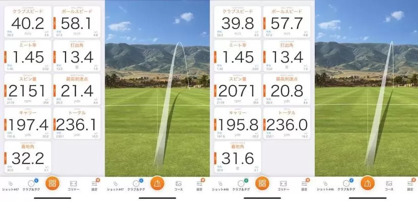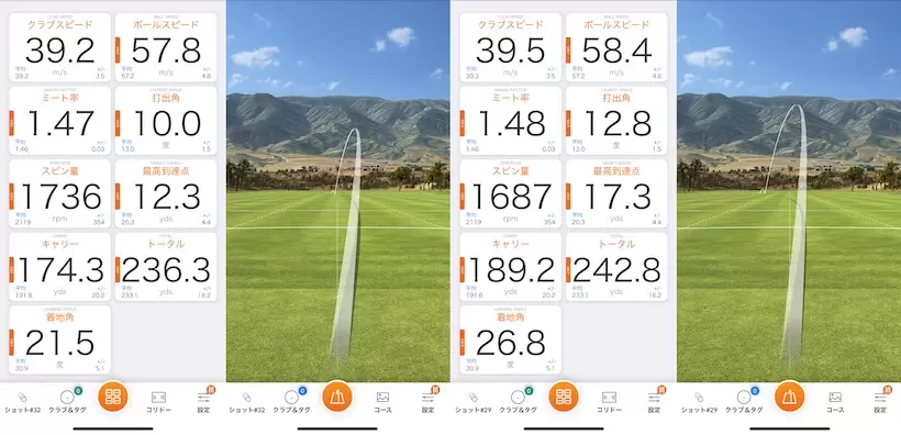 『右はちょっとつかまえに行ったボールですが、左に10.9ヤード着弾地点が移動しました。つかまりはいいけど、左にヒッカケちゃうようなつかまりではないですね』