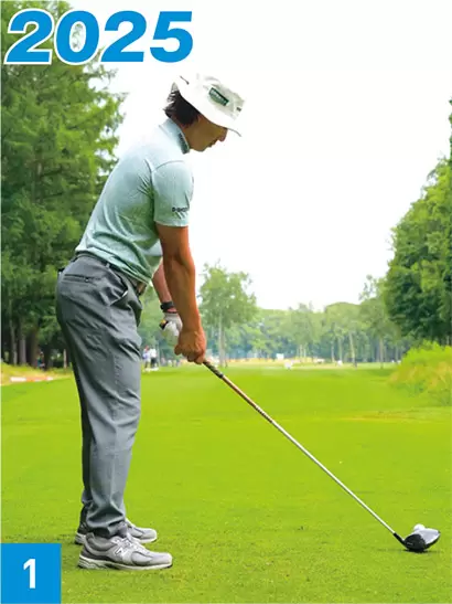 2025年に比べるとダウンスイングのタメが大きかった。左肩を少し上げながら高弾道ボールを打っていた。