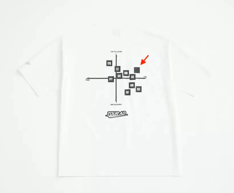 ユナイテッドアローズとグラファイトデザインのコラボTシャツ。バックデザインはツアーADシリーズのポジショニングマップになっている。カラーは白と黒。価格は9680円(税込)。