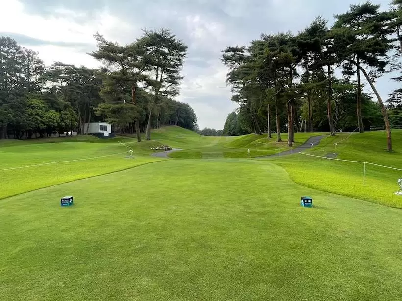 同じく2番ホール。パー4のティーイングエリアからの眺め。左の林が意外にプレッシャー?