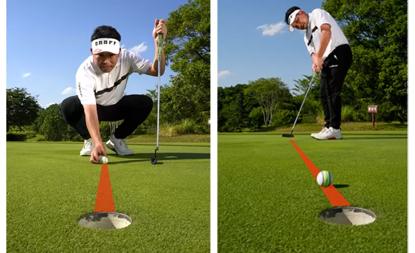 ラインが見える範囲が広いからセットしやすく、パッティングのラインも線ではなく、帯でイメージしやすい。