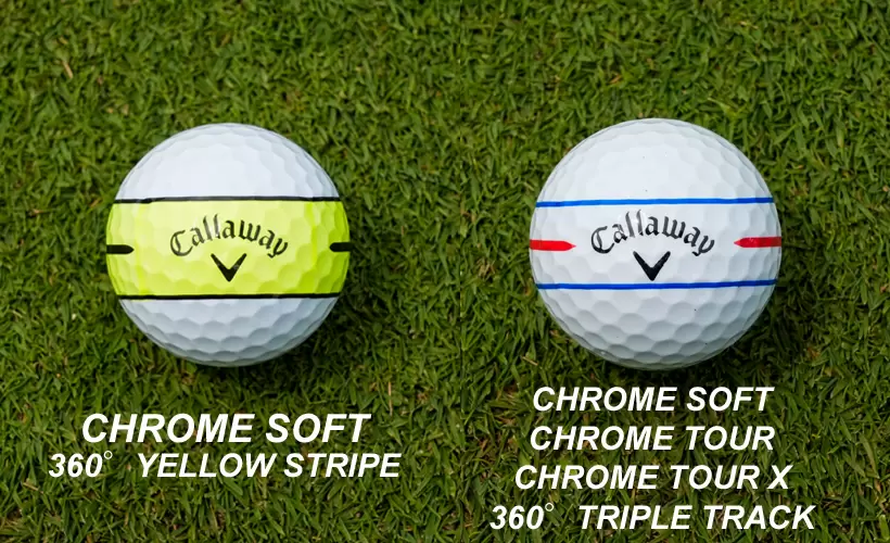 キャロウェイ ●クロムソフト 360°イエローライン(写真左) 3ピース、ウレタンカバー、実勢価格(1ダース)7370円 ●クロムソフト 360°トリプルトラック(写真右) 3ピース、ウレタンカバー、実勢価格(1ダース)7370円 ●クロムツアー 360°トリプルトラック(写真右) 4ピース、ウレタンカバー、実勢価格(1ダース)7370円 ※イエロー有り ●クロムツアーX 360°トリプルトラック(写真右) 4ピース、ウレタンカバー、実勢価格(1ダース)7370円 ※イエロー有り