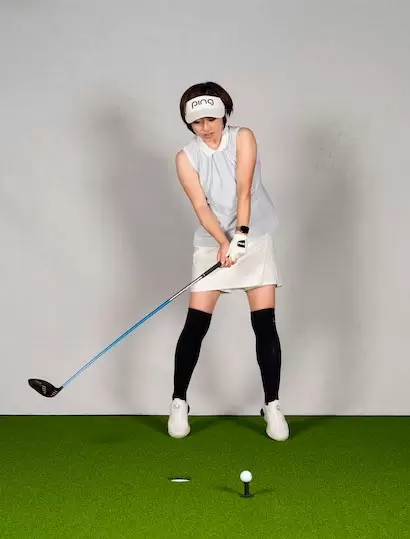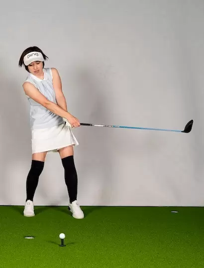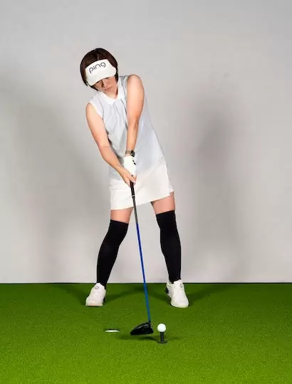 地面を踏みつけ、蹴るようにスイングしても腰の回転が伴わなければ地面反力の効果は望めない。