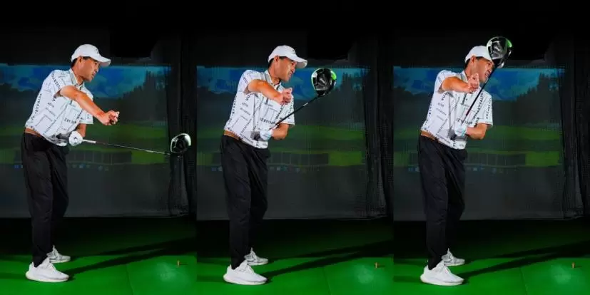 クラブはあくまでも飛球線に対して真っすぐ引く!