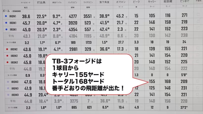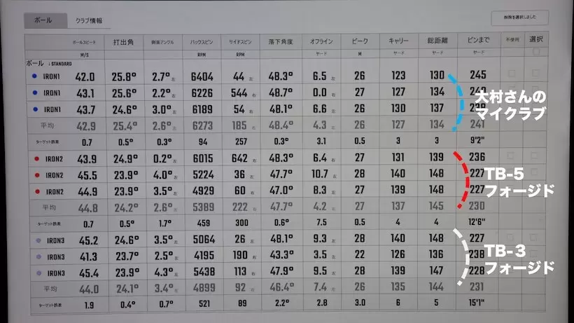 「ショート番手はストレートボールが打てる『TB-5フォージド』、ロング番手は楽にキャリーが出せる『TB-3フォージド』に決まりました」(大村さん)