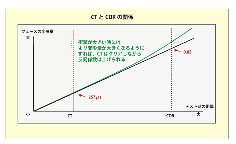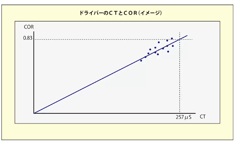 CTとCORは本来比例関係にあり、グラフ化すると直線になるはずなのに、市販のヘッドを計測すると直線上から離れたものもあると言われている。
