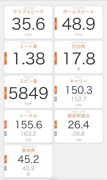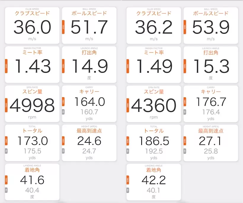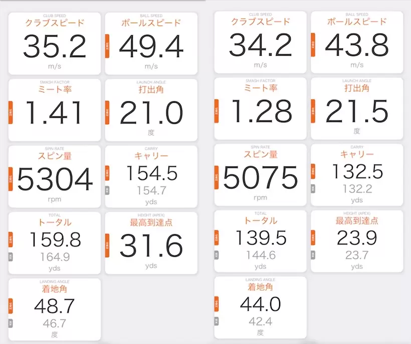 (写真左)i240の7番アイアンの測定データ(ロフト31.5度)(写真右)奥村さんが使用中の7番アイアンの測定データ(ロフト33度)