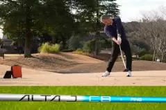 試打クラブのシャフトは「ALTA J CBブルー」。素直なしなり戻りで高MOIヘッドでも振り遅れない。