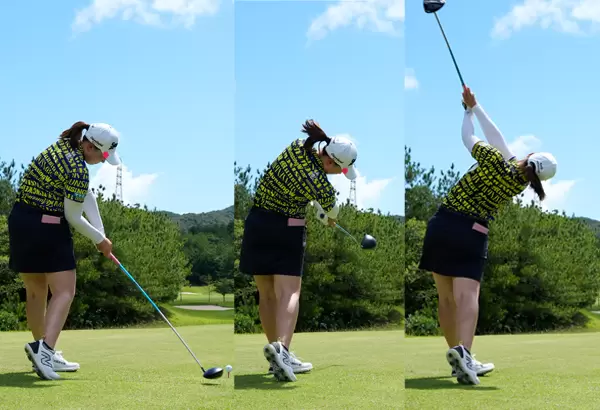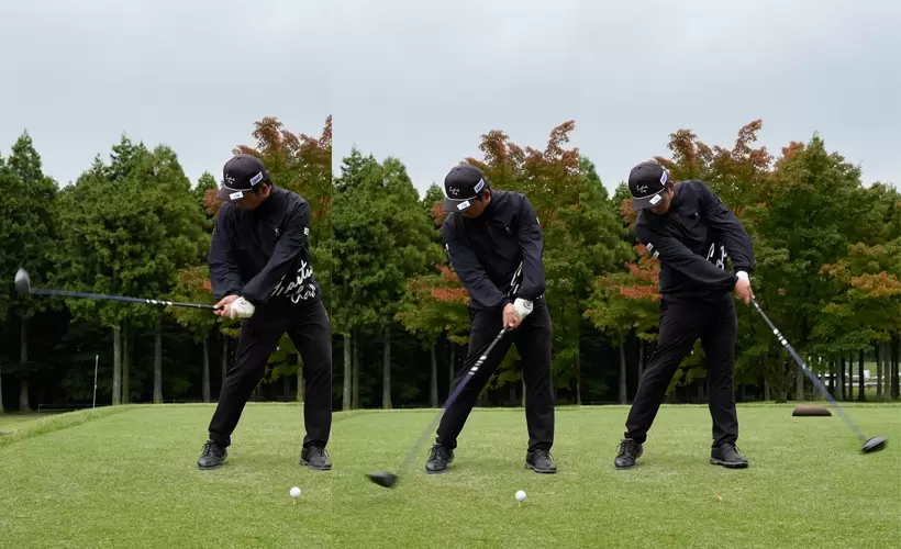竹田麗央 ヘッドが低い位置からインパクトに向かい、アッパー軌道で高い位置にヘッドが振り抜けている。