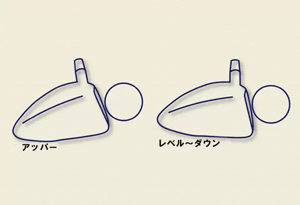 アッパー軌道はスイングの最下点以降にインパクトを迎えるというとこと、ハンドレートな状態だからインパクトロフトは増える。レベルブローの場合インパクトロフトの増加は遠心力によるもののみ、ダウンブローの場合はハンドファーストが強くなるぶん、インパクトロフトは減少する。