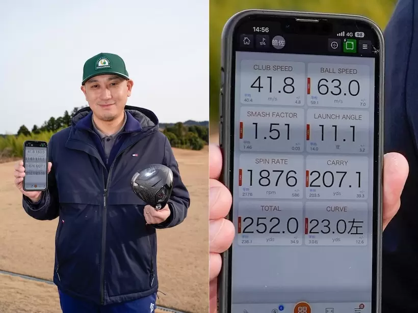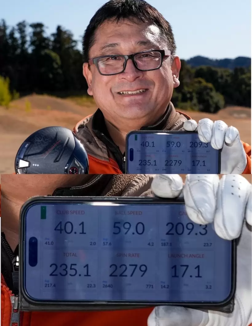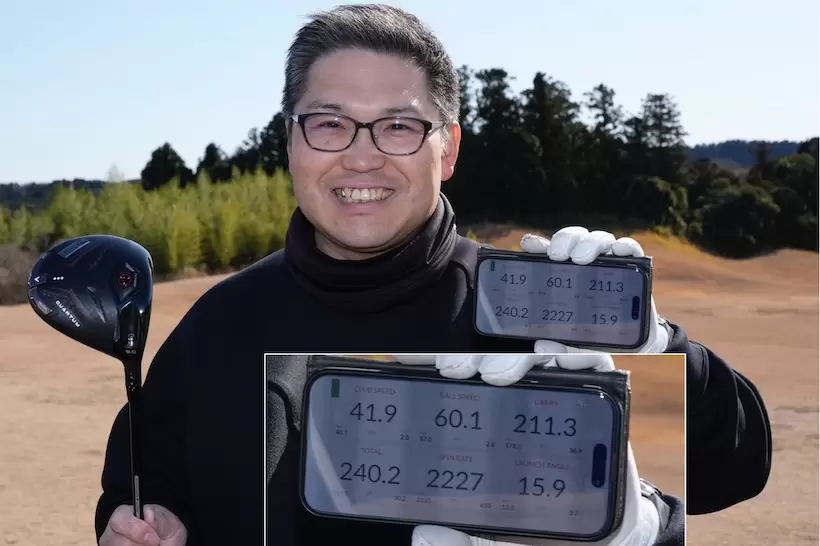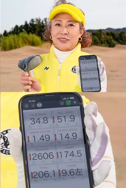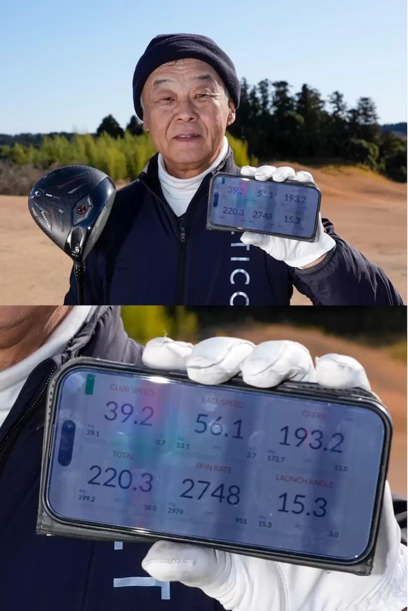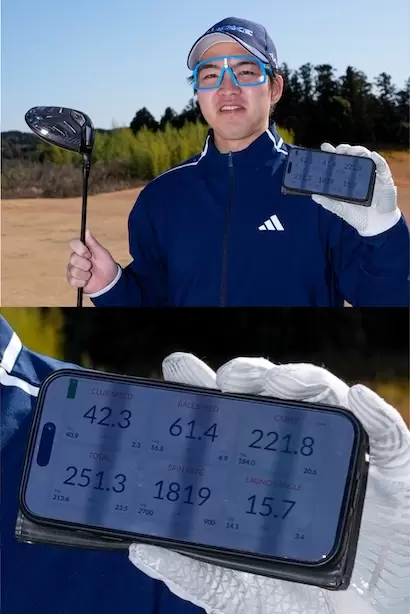 ボール初速70.7m/s、トータル飛距離287.7ヤードを達成した二階堂さんのスイング。「♦♦♦MAX」なら300ヤードも夢じゃない