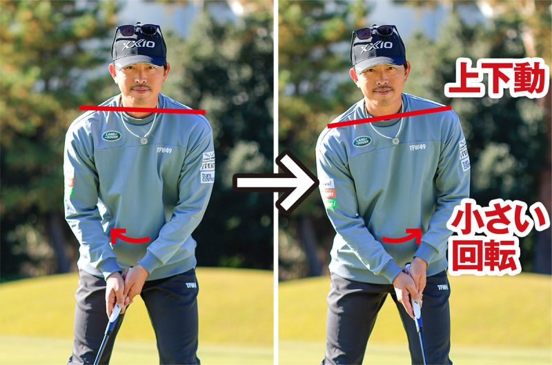 パットがうまい人は手を使わない。パターを動かしているのは、お腹の小さい回転