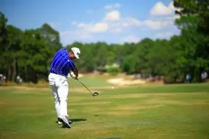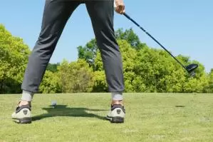 テークバックをスムーズにするなら、軽く足踏みしながらクラブを上げてみて!