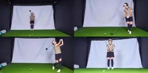 テークバックは「右手人さし指は上へ! 左手は下へ!」のイメージが良い。グリップが体から離れがちな人は試してみて!