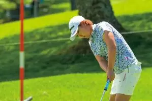 ツアー初勝利を果たした小滝水音!ドライバー並みの幅広スタンスのパッティングは「横峯さくらさんのマネです」