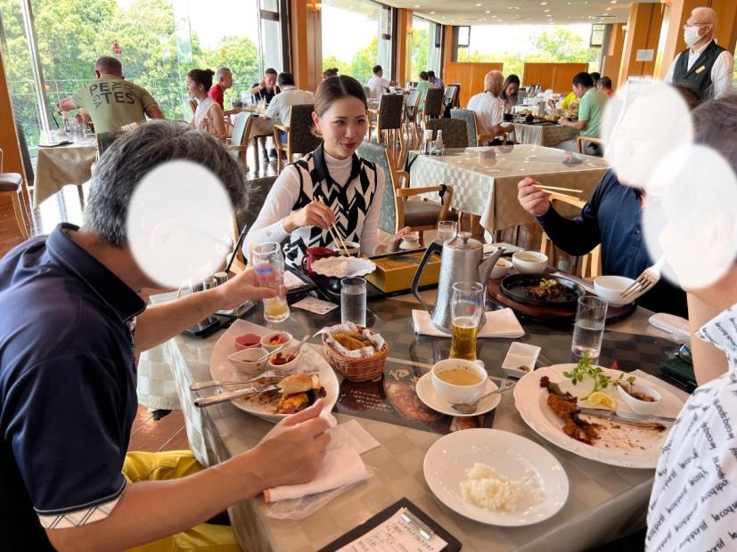 お楽しみのランチタイム。ゴルフの話も、ゴルフと全然関係ない話も、とにかく盛り上がる!